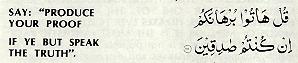 And they have produced the only proof they have; in over fifteen hundred different languages! Eleven different dialects of the Bible for the Arabs alone! Are we going to swallow them hook, line and sinker? No! It is presupposed that when Allah commands us to demand for proof, that we would be in a position to analyse the proof, once it is produced. Otherwise, it makes no sense to demand for proof; it would be nonsense!