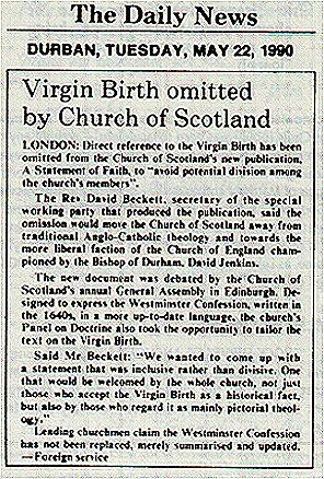In deference to the Bishops of the Church of England (the “Anglicans”) the Church of Scotland most respectfully omitted any reference to the “Virgin Birth” from its most recent publication “A STATEMENT OF FAITH.” The topic of the miraculous conception of Jesus (pbuh) is getting increasingly hotter for Western Christianity to handle as you see here: