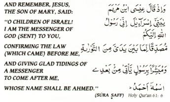 Just a cursory glance, a rapid reading, a hurried look at the previous verse will satisfy the Muslim that Jesus Christ (pbuh) did indeed prophesy the advent of Muhummed (pbuh), the Messenger of God. The Muslim is puzzled at the stubbornness, vanity and tunnel vision of the Christian which prevents him from seeing his own inner light and listening to his conscience so as not to recognise the obvious.