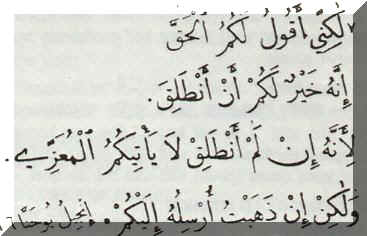 I implore my brethren who can read the Arabic quotation to memorize it together with the English translation above and create opportunities for using it. Learn the verses in conjunction