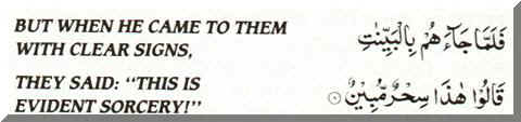 Thus concludes (Ayat) verse 6 of (Sura) chapter 61 under discussion. “The Prophet of Islam was foretold in many ways; and when he came he showed forth many Clear Signs, for his whole life from beginning to end was one vast miracle. He fought and won against odds. Without learning from men he taught the highest wisdom. He melted hearts that were hard, and he strengthened hearts that were tender and required support. In all his sayings and doings men of discernment could see the working of God’s hand;” yet the sceptics called it SORCERY — jugglery — magic!