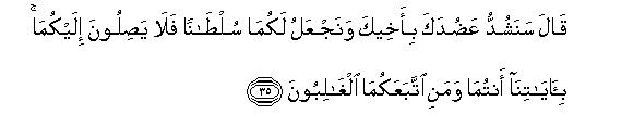 “We will strengthen thine arm with th? brother and We will give unto you both power so that they cannot reach you from Our portents. Ye twain and those who follow you will be the winners.” (Verse 35, Surah Al Qasas).