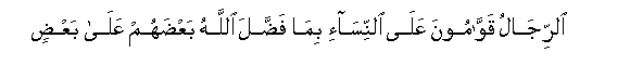 “Men are in charge of Women, because God hath made the one of them to excel the other”(Surah Al Nisa, 34, after Pickthall’s Explanatory Translation).