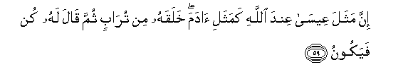 (Lo! the likeness of Jesus with Allah is as the likeness of Adam He created him of dust, then He said unto him: Be and he is. From Surah : Al-Imran; verse 59).