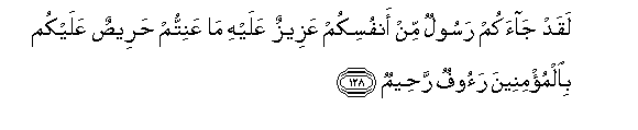 “There hath come unto thee a messenger, (one) of yourselves, unto whom aught that ye are overburdened is grievous, full of concern for you, for the believers full of pity, merciful” (Surah IX, 128).