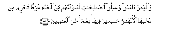 “And those who believe and do good work., them verily We shall house in lofty dwellings of the Garden underneath which rivers flow. These they will secure”.