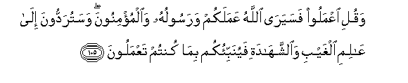 “And Say (unto them) Act ! Allah will behold your actions, and (so will) His messenger and the believers, and ye will be brought back to the Knobbier of the invisible and visible, and He will tell you what ye used to do”. (Surah IX, 105).