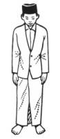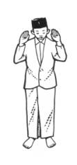 4-After this posture the standing position in resumed (see Fig. 5), but unlike the qiyâm position, the hands being placed on either side, with the following words:
