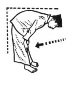 3- then, saying Allâhu akbar (Allah is Greater), the devotee lowers his head down, so that the palms of the hands reach the knees. In this position, which is called ruku, that is bending (see Fig. 4). Words expressive of the Divine glory and majesty are repeated three times. They are the following:-