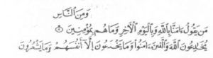 “Andamong people are those who stimulate the belief in God give credence tohisOmnipotence and Authority and acknowledge the truth of the Hereafterwhile infact they hug their old irreverent conviction to their heart; Theyapply theirmind to deceive God, the Omniscient Who knows what is secretlysuggested to themind and to deceive those whose hearts have been impressed with theimage ofreligious and spiritual virtues, when in point of fact they onlydeceivethemselves but they fail to perceive.” ( Sura 2: 8-9)