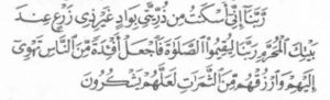 “OGod our Creator, I have made some of my progeny take abode in anuncultivatedvalley in the vicinity of your Sacrosanct House in order thatthey engage,O God, in the act of worship. let the hearts and souls of peopleO God, bemoved toward them with tenderness and affection. (Sura 3:97)