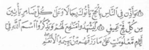 “Andproclaim pilgrimage to the people. They shall come to you on foot andmountedupon the back of every lean and exhausted beast of burden fromeveryremote, distant and far away place. ” (they shall be eager torespondto your call) in order to observe facts and event. That areconsidered as a source knowledge, and to participate in theintercourse of life and envisage the spiritual and thedeeply movingsacred events and associations which dateas far back as the mostancienttimes ” And they will extol and proclaim the glorious attributes of Godthroughout the whole continuance of the predetermined days inappreciation ofGod ‘s blessings, and be actuated with the feeling of gratitude andgratefulnessfor what He provided for them of cattle for sacrifice, and to fulfillwhat Godhas enjoined ” (Sura 22:27-28)