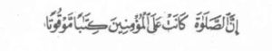 “Andwhen you feel safe and secure, then you perform the act of worship inthe propermanner as prescribed by God, for the act of worship has been aprescriptive ruleincumbent on those whose hearts have been touched with the Divine handtoobserve at the scheduled hours.” ( Sura 4: 103)
