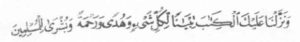 “ The Book- The Qur’an which Wesent down to you is the fountain-head ofdivine knowledge and the chief source of divine information. Itelucidates every aspect of every thought and it is a guideinto all truth and a mercy extended to the people and joyful tidings tothose who conformed to Islam. “(Sura 16:89)