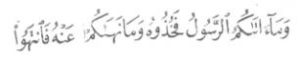 “And whatever the Apostlecommands you to do, you must do, and whatever heforbids you to do, you must not do ” (Sura59:7)