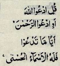 OR CALL UPON RAHMAN BY WHATEVER NAME YE CALL UPON HIM (it is well): FOR TO HIM BELONG THE MOST BEAUTIFUL NAMES |